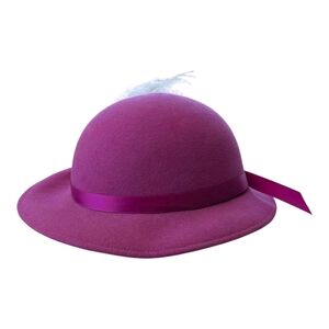 Vintage Bollman Doeskin 100%Wool Felt Hat Fascinator Pink Fuschia Feather Ribbon