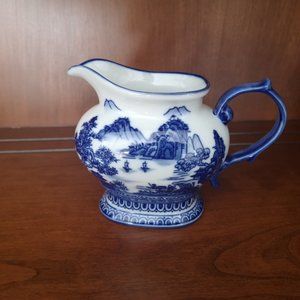 Vintage fine porcelain creamer from China and Japan in good condition. The blue one measures 4" H x 6" L and the yellow one measures 3" H x 5" L.