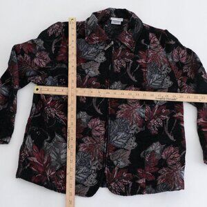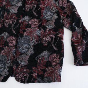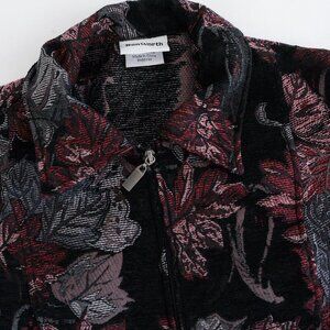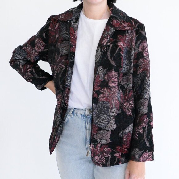 Vintage Bon Worth Black Maroon Tapestry Embroidered Floral Zip Blazer Jacket S