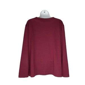 Vintage BonWorth Cranberry Embroidered Paisley Button Up Cardigan is in very good preloved condition. This BonWorth cardigan features a rich cranberry color with a crew collar and intricate embroidered paisley design. The boxy design and button-down style make it a versatile addition to any wardrobe. Perfect for both casual and festive occasions, this piece combines comfort with elegance. 81 1/2% polyester, 18 1/2” cotton. Machine wash inside out and lay flat to dry.