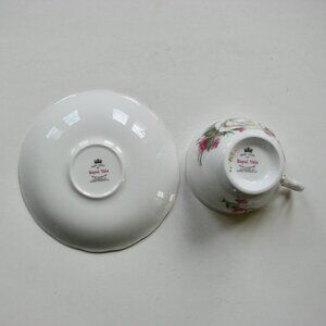 Vintage Bone China Teacup and Saucer White Rose Pink Flower Royal Vale Scalloped
