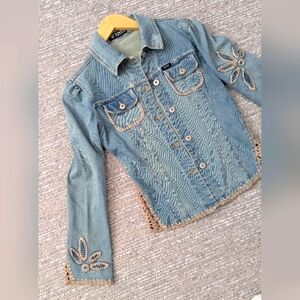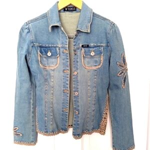 Bongo Vintage Womens (Small/3) Denim/Jean Jacket With Cream Crochet/Stitching