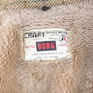 Super comfortable and warm. Vintage made in Canada Borg lined jacket. 22" pit to pit. Brown accents on cuffs and pockets. Heavy duty zipper.