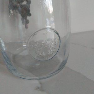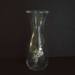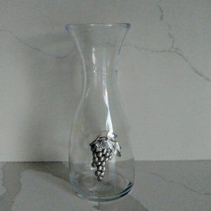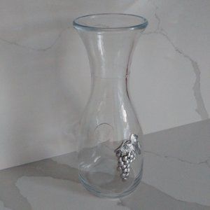 A charming vintage BORMIOLI ROCCO Italian Carafe decanter with authentic pewter grape motif on the body of the carafe.