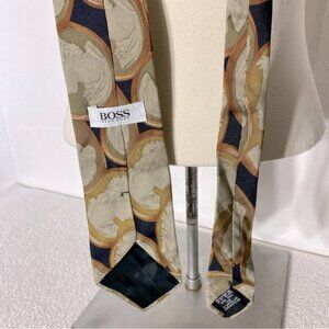 Vintage Boss Hugo Boss Black Tan Cameo Print 100% Silk Tie