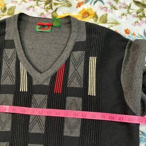 Vintage Boston Trader Sweater Mens L Grandpa Merino Wool Blend Geometric Vneck
