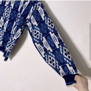 Vintage Botany 500 Blue White Jacquard Crew Neck 80s 90s Dad Sweater L