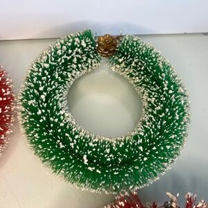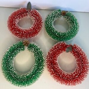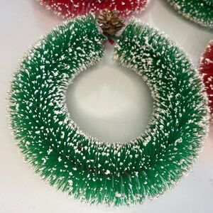 Vintage Bottle Brush Wreath Set Of 4 Snow Flocked 60’s Christmas Wreaths 6”