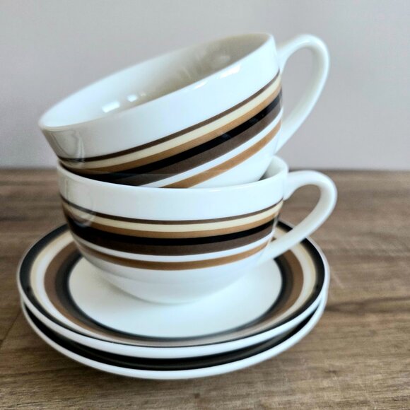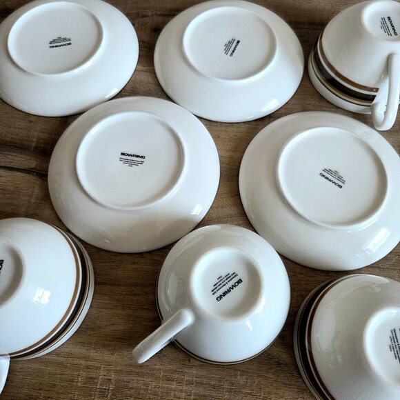 Vintage Bowring set of 4 tea/coffee cups and saucers with brown strips.