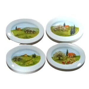 Lovely set features scenes from Tuscany. Perfect for entertaining and serving appetizers. Features four different Italian Tuscan scenic plates.