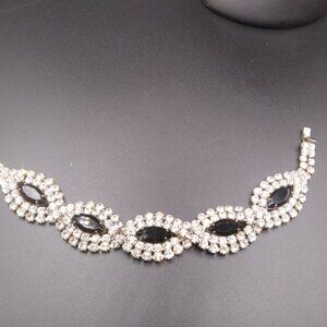 Vintage Box clasp Rhinestone and Black Glass Rhinestones 7 1/2'' Bracelet