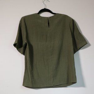 Vintage Braemar Jeremy Scott blouse shirt olive green shoulder pads