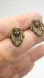 Unique vintage brass earrings featuring an intricate Art Deco woman’s face design. Their antique gold tone and sculpted details give off a mysterious, old-world charm — perfect for collectors or anyone who loves bold, historical-inspired jewelry.