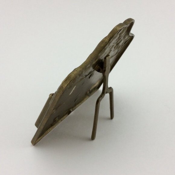 Vintage Brass Business Card Holder Victorian Revival Ornate Easel Stand Floral