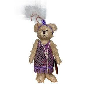 Vintage Brass Button Bears Daisy Hand Crafted Collectible Teddy Bear is in very good preloved condition. This bear is part of my personal collection. There are wee holes on the bottom of her feet from being attached to a stand. Please see pics. This does not affect the bear in any way. Daisy is looking pretty in her 1920’s flapper outfit. Dress has purple sequins and tassels. A string of light pink pearls around her neck. Fluffy white feathers and a jewel on top of her purple braided headband. Both the dress and headband are removable. Legs only are jointed. Daisy is the perfect vintage bear to add to your collection.
