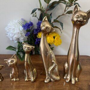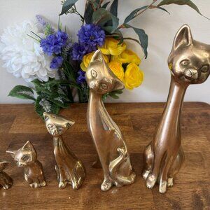 It’s rare to find a complete set of 5 brass cats in graduated sizing—especially with this much personality! Perfect for cat lovers and mid-century collectors alike.