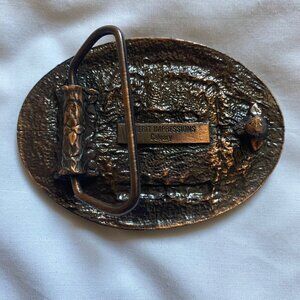 Explore the charm of Canadiana with this Vintage Brass City of Calgary Safety Award Belt Buckle. Crafted with solid brass, it boasts a rich brown hue that has stood the test of time. The buckle features an engraved depiction of a building, symbolizing the proud city of Calgary, and is styled with a classic Western buckle design, perfect for any enthusiast's collection. This belt buckle, measuring 3 inches in length and 2.25 inches in width, fits belts up to 2 inches in width and is designed to accommodate a variety of belts for both casual and formal wear. The buckle is a genuine piece of Canadian heritage, reflecting both quality and style with its Merit brand authenticity.