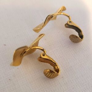 Vintage Brass Coloured Crinkle Crescent Clip-on Earrings