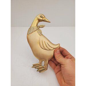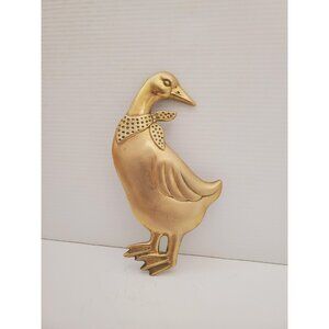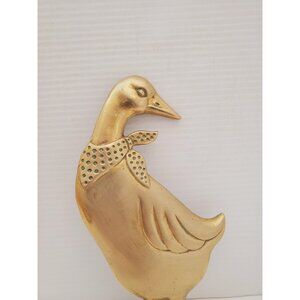 Vintage Brass Country goose Wall Hangings, Metal Goose Plaques, 1980's Rustic Kitchen Decor
