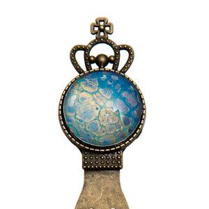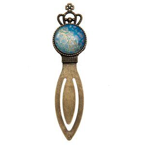 Gorgeous brass bookmark with crown detail in blue & gold.