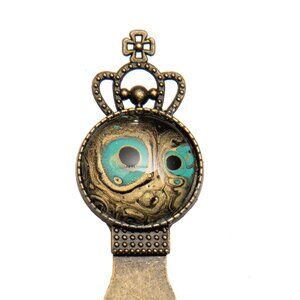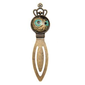 Vintage Brass Crown Bookmark with Peacock Feather Design