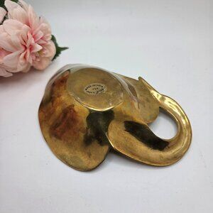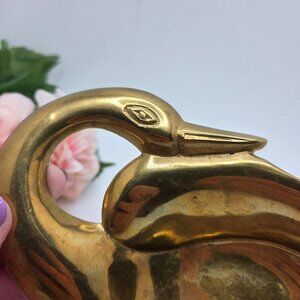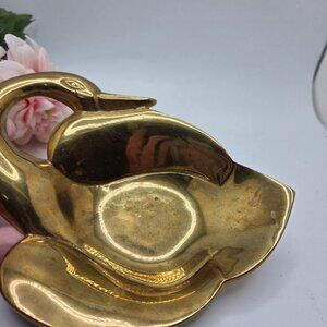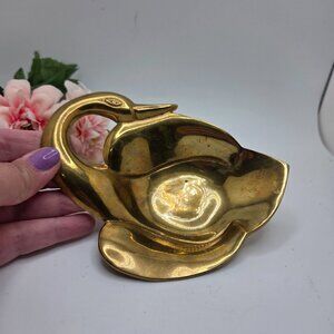 Vintage Brass Curved Long Neck Elegant Swan Trinket Tray From India Mid Century