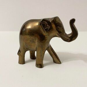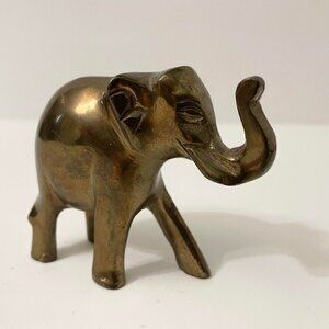 Vintage Brass Elephant Figure 3 Inch Long Trunk Up Figurine