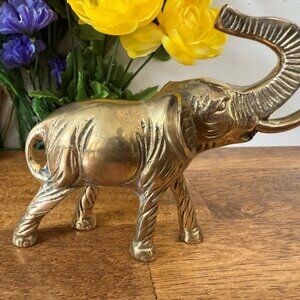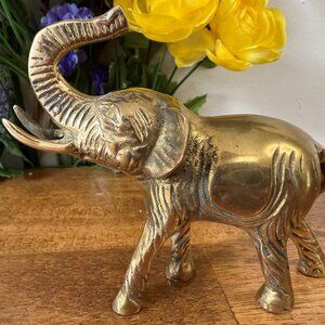 Vintage Brass Elephant Figurine Made in Korea Trunk Up Lucky Symbol Decor