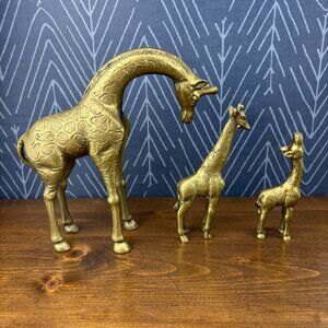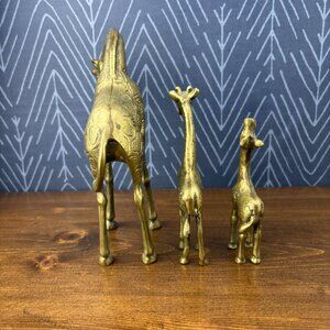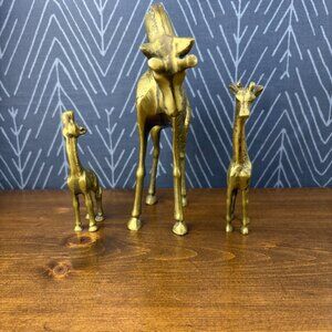 Vintage Brass Giraffe Family Trio MCM Animal Figurines Hollywood Regency Brass