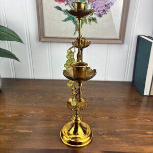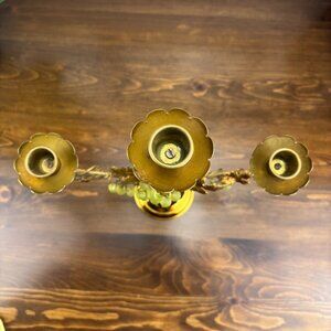 Vintage Brass Grapevine Candelabra Hollywood Regency 3 Taper Candle Holder