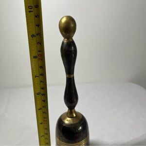 vintage hand bell with brass and black design.