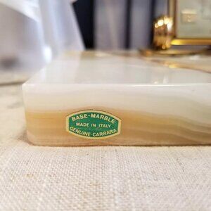 Vintage Brass Royal Elbro Desk Clock w/ Carrara Marble Base Italy - Works