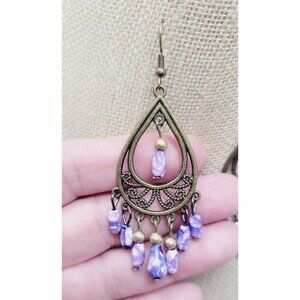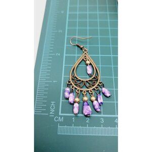 Vintage Brass Tone Pink & Purple plastic beaded Boho Dangly Earrings