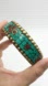 This stunning vintage brass bangle features a beautifully handcrafted turquoise mosaic design accented with red floral inlays. The bracelet is bordered with raised golden bead detailing, giving it a bold and artistic bohemian charm. A unique statement piece inspired by traditional craftsmanship, perfect for adding a touch of global elegance to any outfit. Ideal for collectors and lovers of ethnic or artisan jewelry.