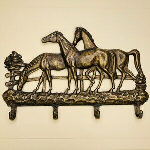 Vintage Brass Wall Hanging Hooks Country Ranch Horses Key Holder- Entryway Decor