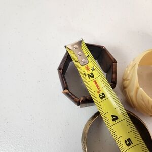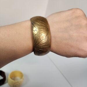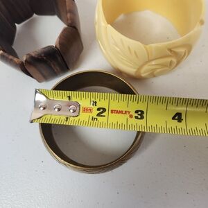Lot 3 Vintage Brass Wood Bangle Bracelet Set Floral Roses Boho Bohemian Jewlery