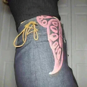 Vintage Bratz Y2K pink butterfly suede lace up high rise dark wash bootcut jeans