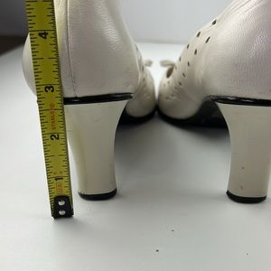 Gorgeous vintage white leather heels in very good used condition and quite trendy right now with the elongated toe and bow.