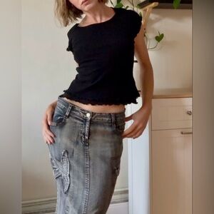 Vintage Bretchers Brooks Black Ruffled Hems Top – XS–S
