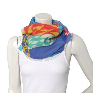 Vintage Bright Abstract Geometric Pattern Scarf Poly Blue Yellow Red