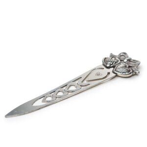 The Vintage Brighton Bow Heart Retired Bookmark is a charming accessory for book lovers. Made from silver-tone metal, this bookmark beautifully showcases a heart design with a bow, making it both stylish and functional. It's perfect for keeping your place in your favourite novels or magazines. This delightful piece was made in Taiwan and is a great gift for anyone who enjoys reading. With its unique design, it adds a touch of elegance to any book collection.