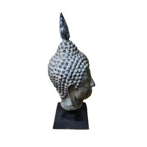 Bring serenity and timeless style to your space with this vintage bronze Buddha head sculpture. Cast in hollow bronze with a naturally aged patina—especially on the back of the head—it stands 11 inches tall and weighs 1080g. Mounted on a solid wood pedestal, this Thai-style piece evokes mid-century spiritual design and makes a striking addition to meditation rooms, vintage interiors, or curated altar spaces.