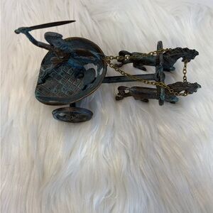 Vintage Bronze Chariot Figurine with Blue Accents