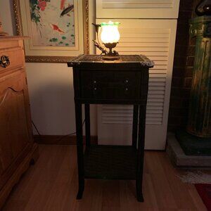 Vintage Bronze Frogs and Tiffany Style Tulip Table Lamp