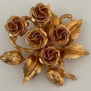 Vintage Brooch Large Golden Roses Pin , circa 60s