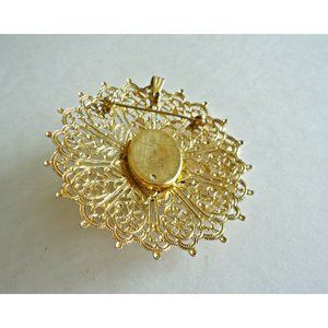 For your consideration is a lovely vintage brooch with a topaz glass center that opens to hold perfume and a cameo scarf clip, circa 1970's.