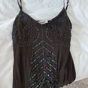 Vintage Brown Beaded Embellished Camisole Tank