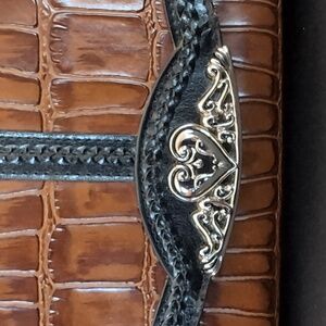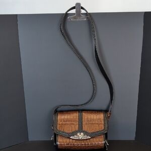 Vintage Marc Chantal brown/black faux snakeskin leather shoulder bag with silver tone hardware.
