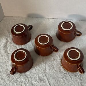 Enjoy your favorite beverages with this set of vintage brown ceramic coffee mugs. Perfect for any home dining setting.made is USA set of 5