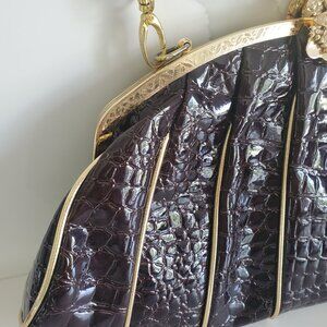 Vintage Brown Croc Evening Bag Clutch Bejewelled Clasp Optional Long Strap